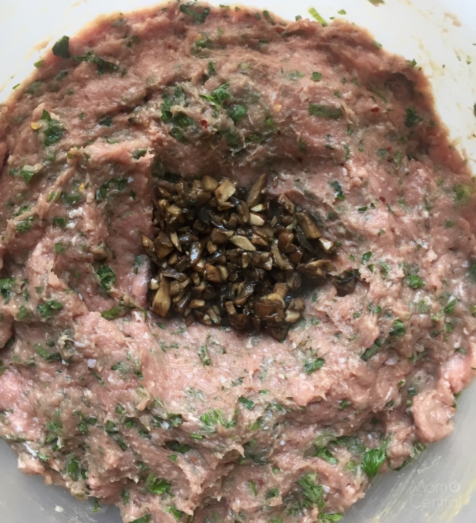 Step 3: As your mushrooms are cooling, combine turkey, herbs and spices, wine, and the egg in a large mixing bowl. If you want to use chives, rosemary, thyme, red onion, or anything else, go for it! Have some fun and let your inner chef shine!